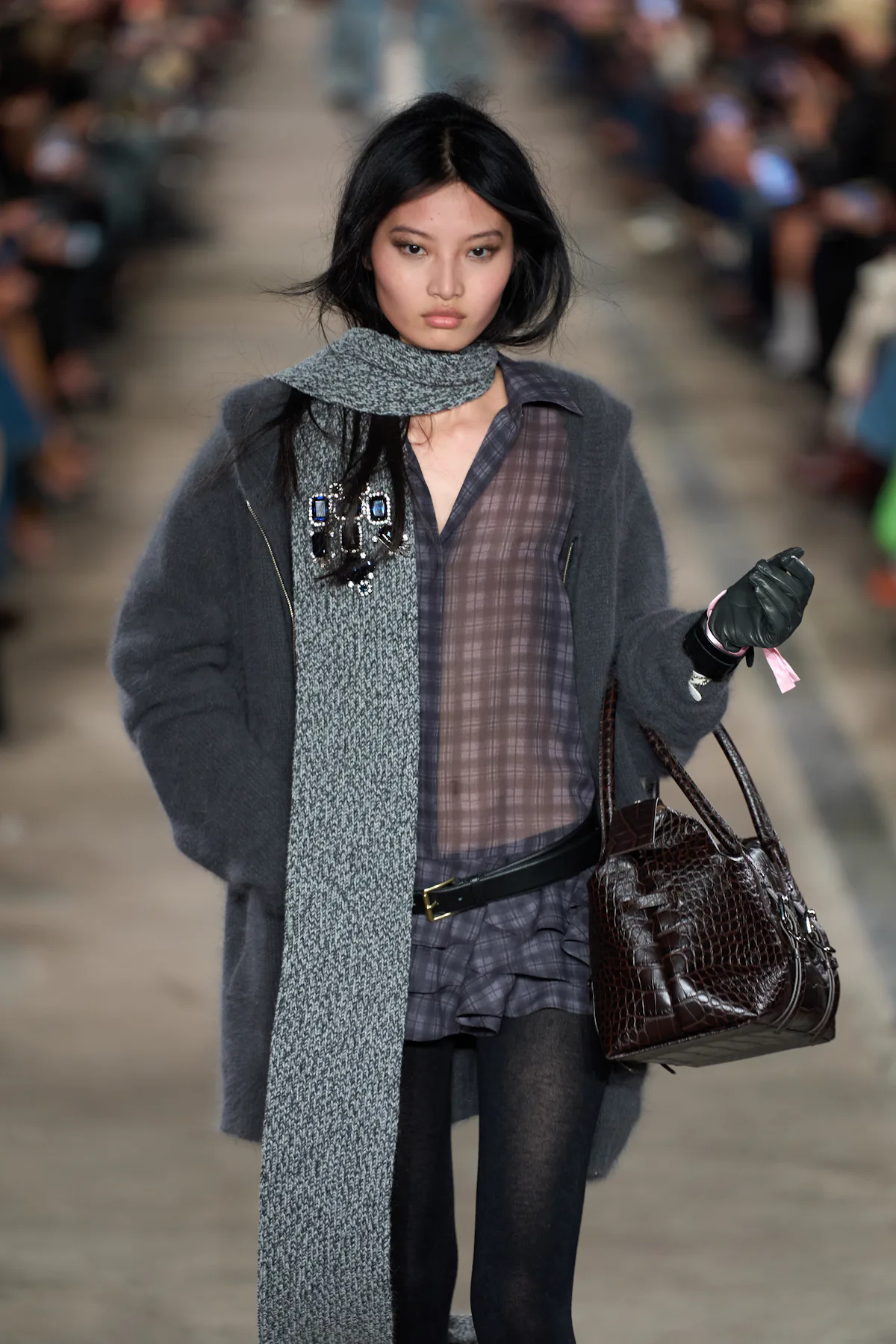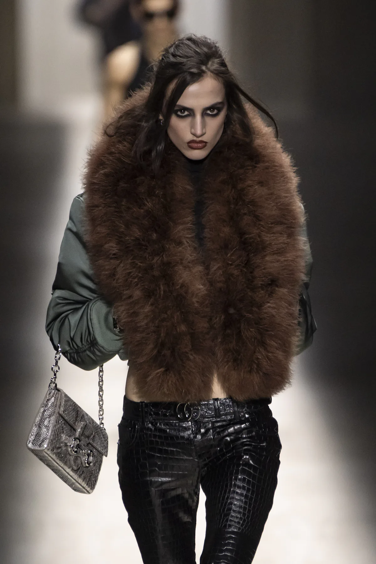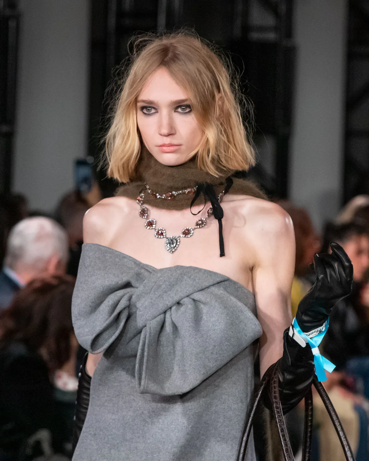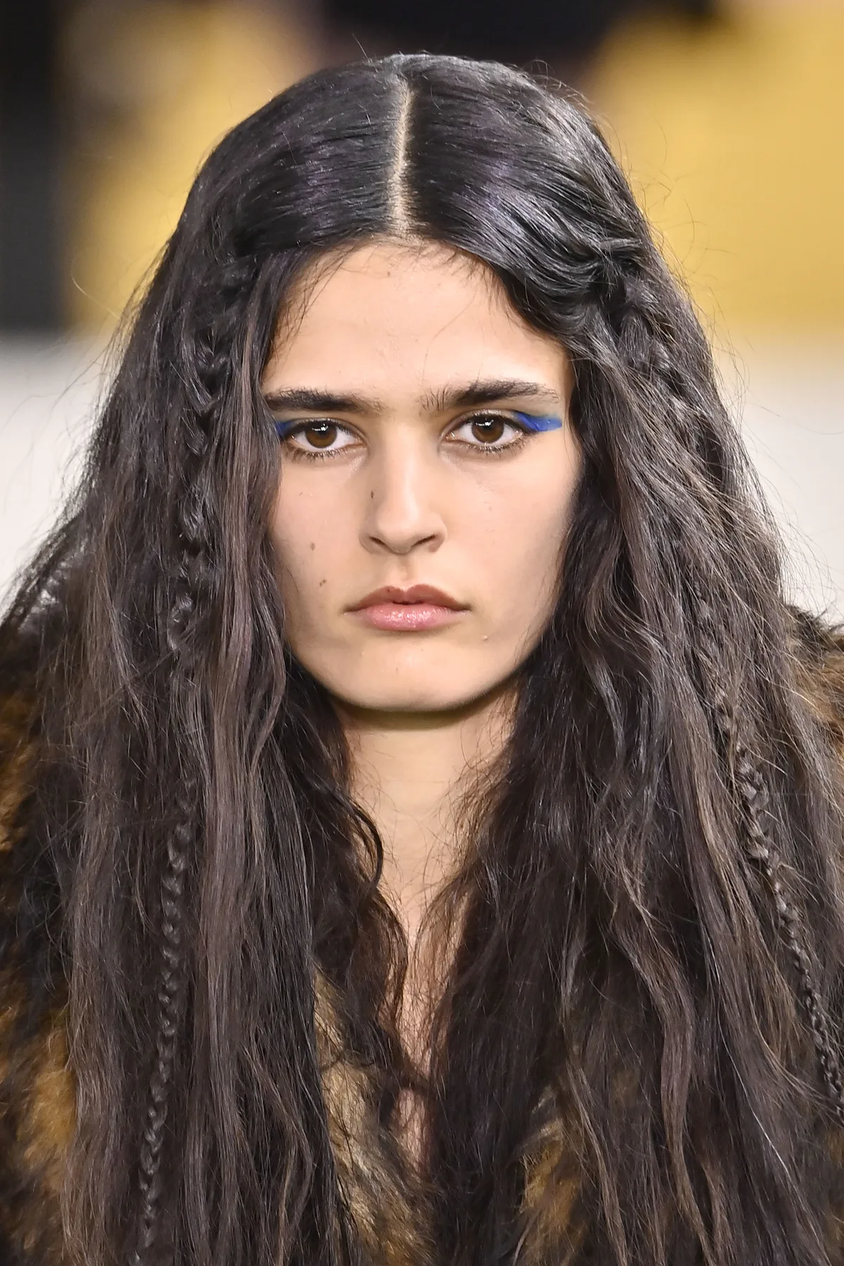 Gucci’s runway makeup referenced the morning after a wild party night, while 7 For All Mankind’s smudgy kohl-rimmed eyes by Pat McGrath channeled leaving the club at 3 a.m. The models’ worn-in makeup paired with going-out tops, skinny jeans, oversized bags, long scarves, and statement necklaces was reminiscent of Y2K it-girls snapped by the paparazzi exiting Les Deux circa 2006.